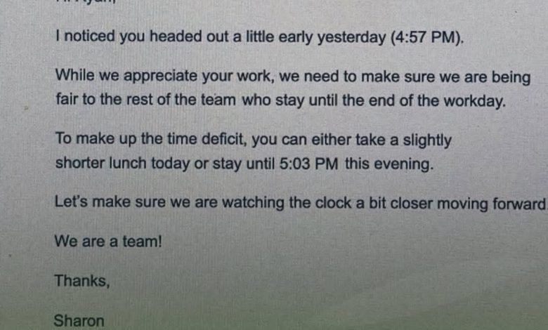 HR تعاتب موظف غادر عمله قبل 3 دقائق من انتهائه